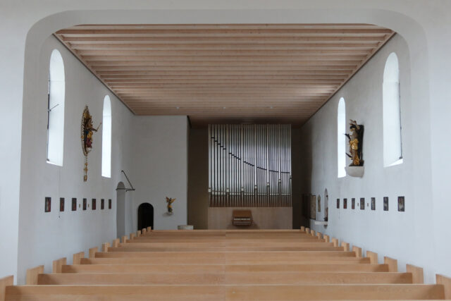 Der mit viel Geschmack und Feinsinn von Architekt Michael Feil aus Regensburg bis 2019 um- und neugestaltete Kirchenraum hat seit den 1950er Jahren eine ungewöhnliche Kubatur: An das alte Langhaus, in dem ebenerdig neben dem einspringenden Turm Stella steht, schließt sich ein deutlich voluminöserer Bauteil mit Chorraum an. Auch angesichts dieser besonderen räumlichen Situation mit verhältnismäßig wenig Höhe, aber großer Distanz setzt die Intonation einmal mehr auf einen möglichst freien, entspannten Pfeifenklang mit deutlicher Artikulation. Mit ihren 22 Registern ist Stella kein riesiges Instrument, aber im Gesamtklang ergibt sich der Eindruck einer feierlich „großen Orgel“ mit Wärme, Transparenz und Gravität. Die freie Windanlage, die musikalisches „Mitatmen“ zulässt , und die moderat ungleichstufige Stimmung tragen sehr zum lebendigen Eindruck bei, den das Instrument hinterlässt. Die enorme Vielseitigkeit beginnt schon bei den charakterlich sensibel herausgearbeiteten Grundstimmen, von denen hier nur der Flauto amabile mit poetischem Traversflötentimbre (bei nichtüberblasenden Metallpfeifen) erwähnt werden soll oder Flauto dolce mit extrem engen Pfeifen und anmutig verzögerter Ansprache. Die Anregungen für Stellas Klanglichkeit sind in die süd- und mitteldeutsche Orgellandschaft zwischen Barock und beginnender Romantik eingebettet und erfahren hier eine kreative Neuinterpretation. Wir Orgelbauer wünschen uns, dass Stella allen Musizierenden und Hörenden eine wertgeschätzte Wegbegleiterin wird!